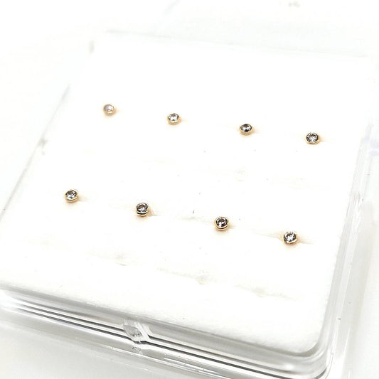 14K Gold- 22G Nose Screw Bezel CZ Set