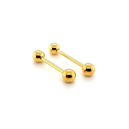 14G 5mm & 6mm Ball Nipple Barbell-Gold Steel