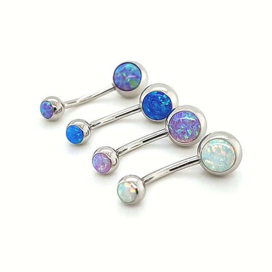 14G Mini Opal Cabochon Ball Belly - 316L S. Steel