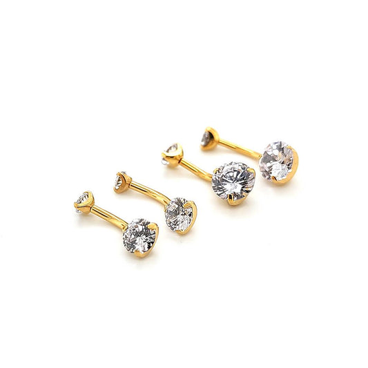 14G Belly CZ Prong Set-Gold Steel