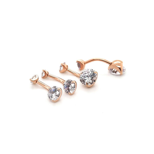 14G Belly CZ Prong Set-Rosegold Steel