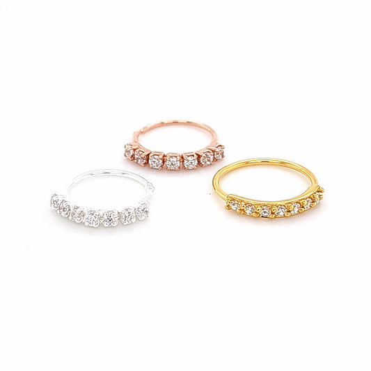 925.Sterling Silver - 3 Colors 7 CZ Nose Hoop, Flexible, 20pc. Box