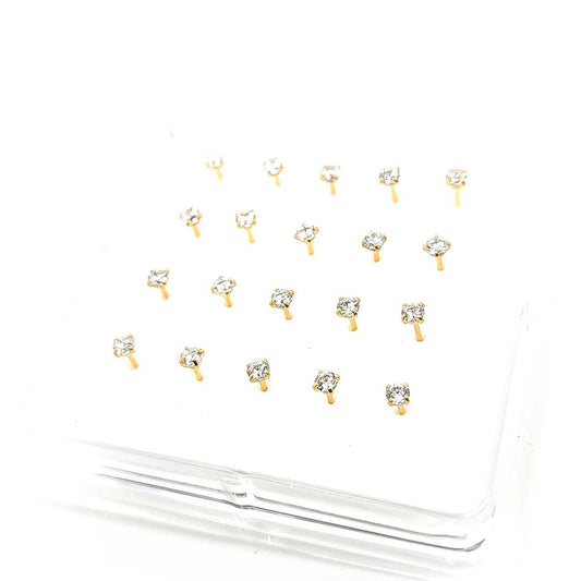 22G Nose Stud Ball End, CZ Prong Set-316L S. Steel Gold & Rosegold