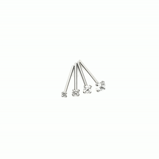 22G/20G Nose Stud, CZ Prong Set Fishtail-316L S. Steel