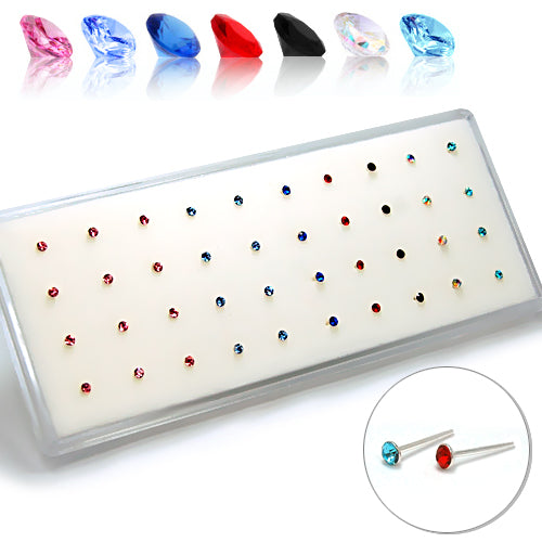 925.Sterling Silver Ball End-Color Gem Nosestud, 40pc. Box
