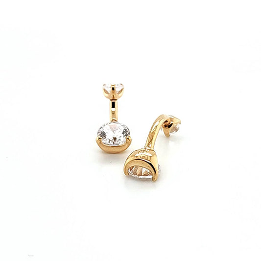 14K Gold- 14G New Style Prong Set-CZ Navel Ring